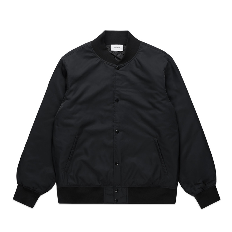 The AS Colour College Bomber Jacket, crafted from recycled polyester with quilted padding. Features ribbed collar, cuffs, hem, YKK snap dome closure, two side pockets, and internal patch pocket. Includes invisible lining access for effortless branding.