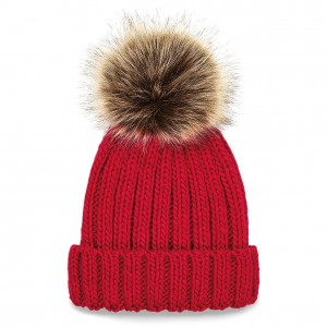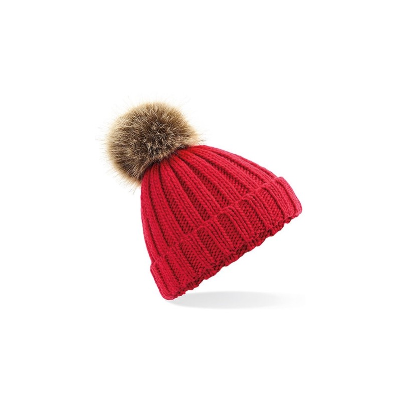 Junior Faux Fur Pom Pom Chunky Beanie