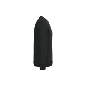 85% organic cotton, 15% post-consumer recycled polyester. Combed cotton. Straight fit. 3-ply brushed fleece LSF (Low Shrinkage Fleece: pre-shrunk fleece). Enzyme-washed. 1x1 rib at collar, cuffs and hem. Matching jersey taped neck inside collar. Twin-needle saddle overstitching on armholes, cuffs and hem. Half-circle at the back.