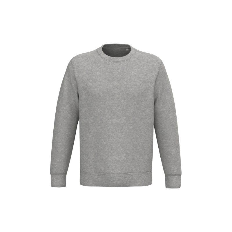 85% organic cotton, 15% post-consumer recycled polyester. Combed cotton. Straight fit. 3-ply brushed fleece LSF (Low Shrinkage Fleece: pre-shrunk fleece). Enzyme-washed. 1x1 rib at collar, cuffs and hem. Matching jersey taped neck inside collar. Twin-needle saddle overstitching on armholes, cuffs and hem. Half-circle at the back.