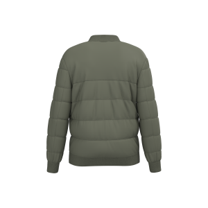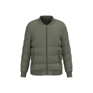 100% pre-consumer recycled polyamide. Pongee polyamide. Regular fit. 300T construction. Coated fabric. Level 4 water repellent and 3 mm/s wind breaker fabric. Padded jacket filled with post-consumer recycled polyester. Teddy collar. 2 x 2 matching ribbing on collar, cuffs and hem. Middle front zip fastening and front pockets in recycled nylon with matching bias binding. Inside piped pocket with zip on the left side. Customisation patch in main material with hanging loop inside the garment. Chest and hem zip for customisation. No overstitching on the front and back for easy customisation.