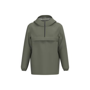 100% post-consumer recycled polyester. Regular fit. 2-layer bonded fabric with inner membrane and heat-sealed seams for optimum waterproofing. Waterproof 4000 mm. Breathable 3000 g/m²/24h. Middle front with recycled waterproof quarter zip. Through chest pocket with flap and two piped side pockets with reverse zip. Two ventilation eyelets under the front pocket flap. 3-panel hood. Drawstring with recycled stoppers inside the hood and at the bottom of the garment on the left-hand side when worn. Elasticated cuffs. Single overstitching on the cuffs and hem.