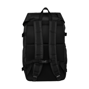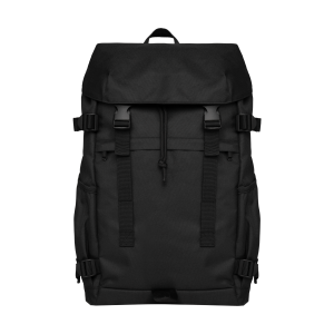 100% post-consumer recycled polyester. 600D polyester. ONE SIZE. Capacity: 26 L. Coated fabric. Multi-purpose, multi-pocket backpack. Main opening with top flap closed by tightening loops and adjustable with drawstring and stopper, zipped opening at the top. Straps with contrasting black buckles on Organic Khaki and Dark Camel colourways. Two side pockets with bias trim and adjustment straps. Zipped front pocket. Mesh back and shoulder straps for added breathability. Zipped storage compartments inside. Bottom of bag reinforced. Carry handle.