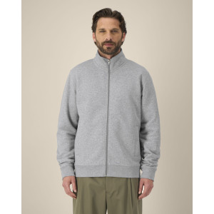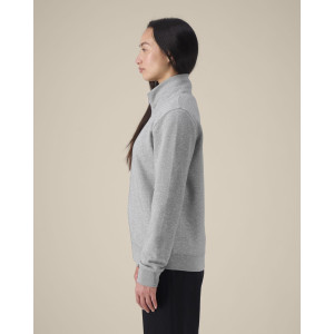 The unisex mock-neck zip-through sweatshirt