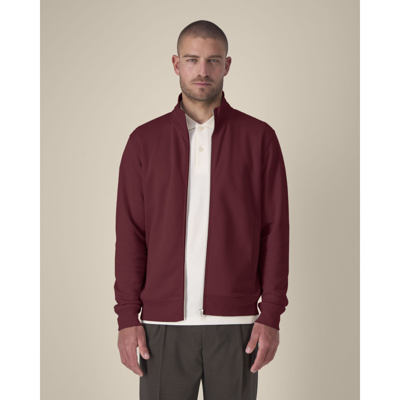 The unisex mock-neck zip-through sweatshirt