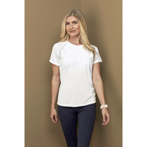 • Modern and stretchy sports T-shirt for women, with contrast raglan seams made of quick-drying, breathable mesh-material